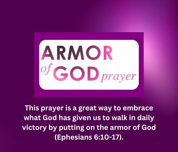Thank you, Lord Jesus, for equipping me with everything I need to win my battles this day! I praise you that I am protected today by the armor of God. I now claim your promise that no weapon formed against me shall prosper (Isaiah 54:17). In Jesus’ mighty name, amen!